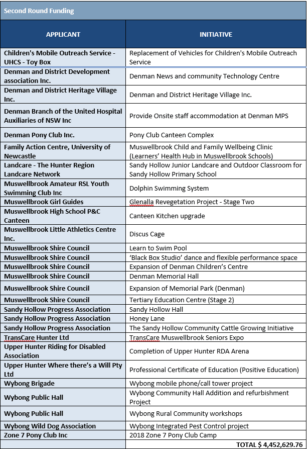 As a result of the Enforceable Undertaking and the additional $200,000 that was made available, the Community Fund and Investment Committee decided to commit the remaining resources to projects from Round 1 and Round 2 that showed merit and were unable to be fully funded in Round 1 or Round 2. Eight local community initiatives received a combined total of $202,049.52 as outlined in Table 3.
